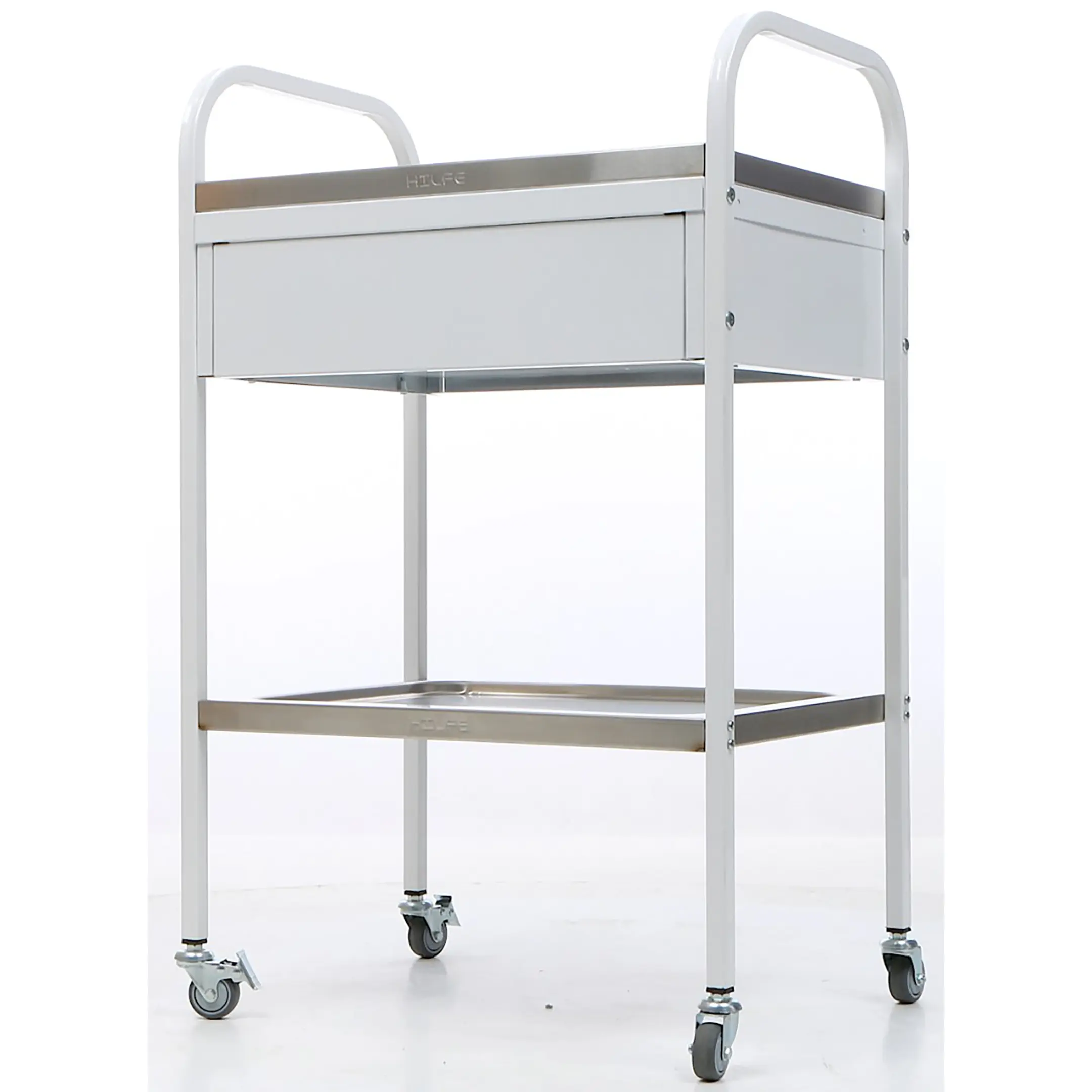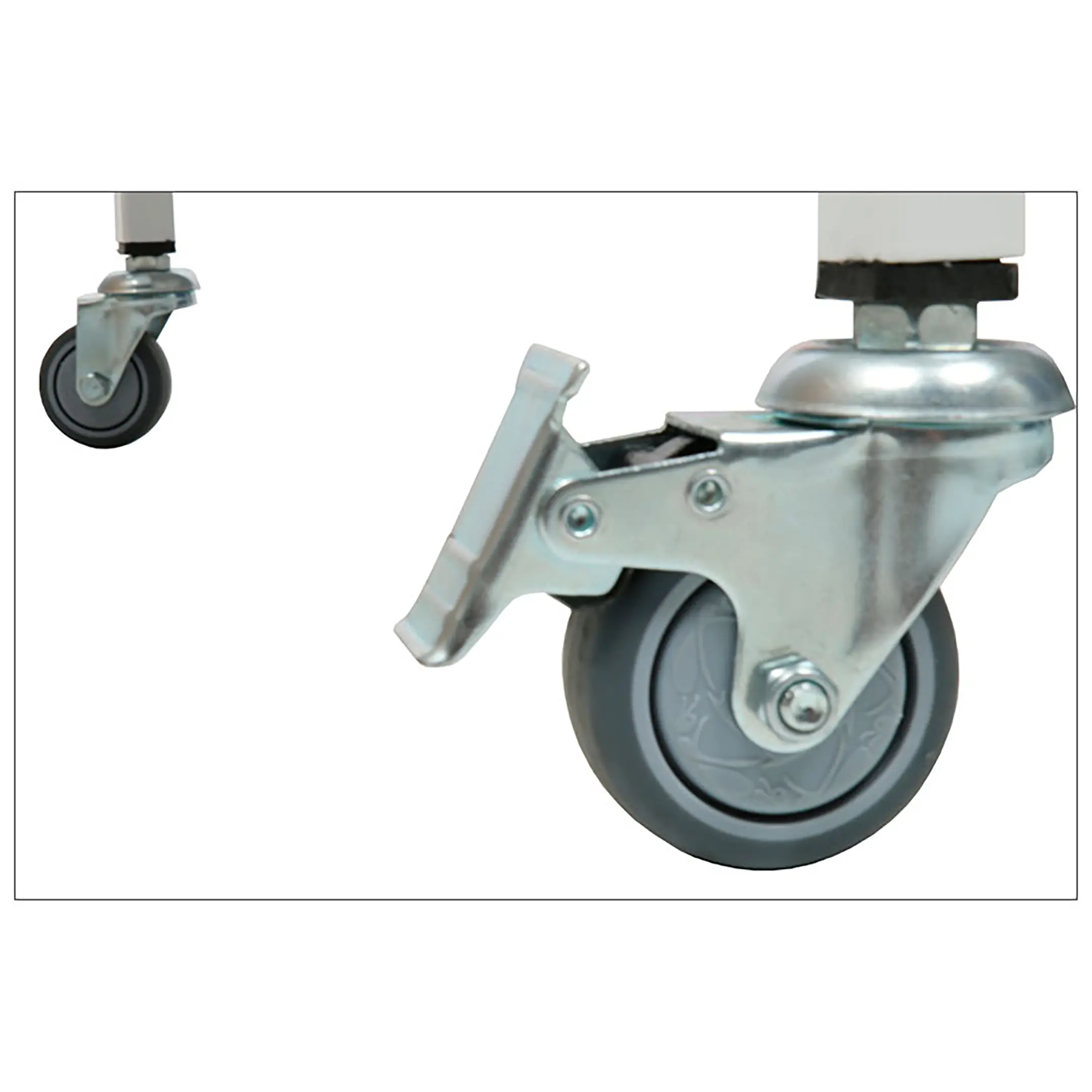 • столик процедурный имеет 4 колеса из немаркой резины, D= 50 мм. Два колеса снабжены тормозом;