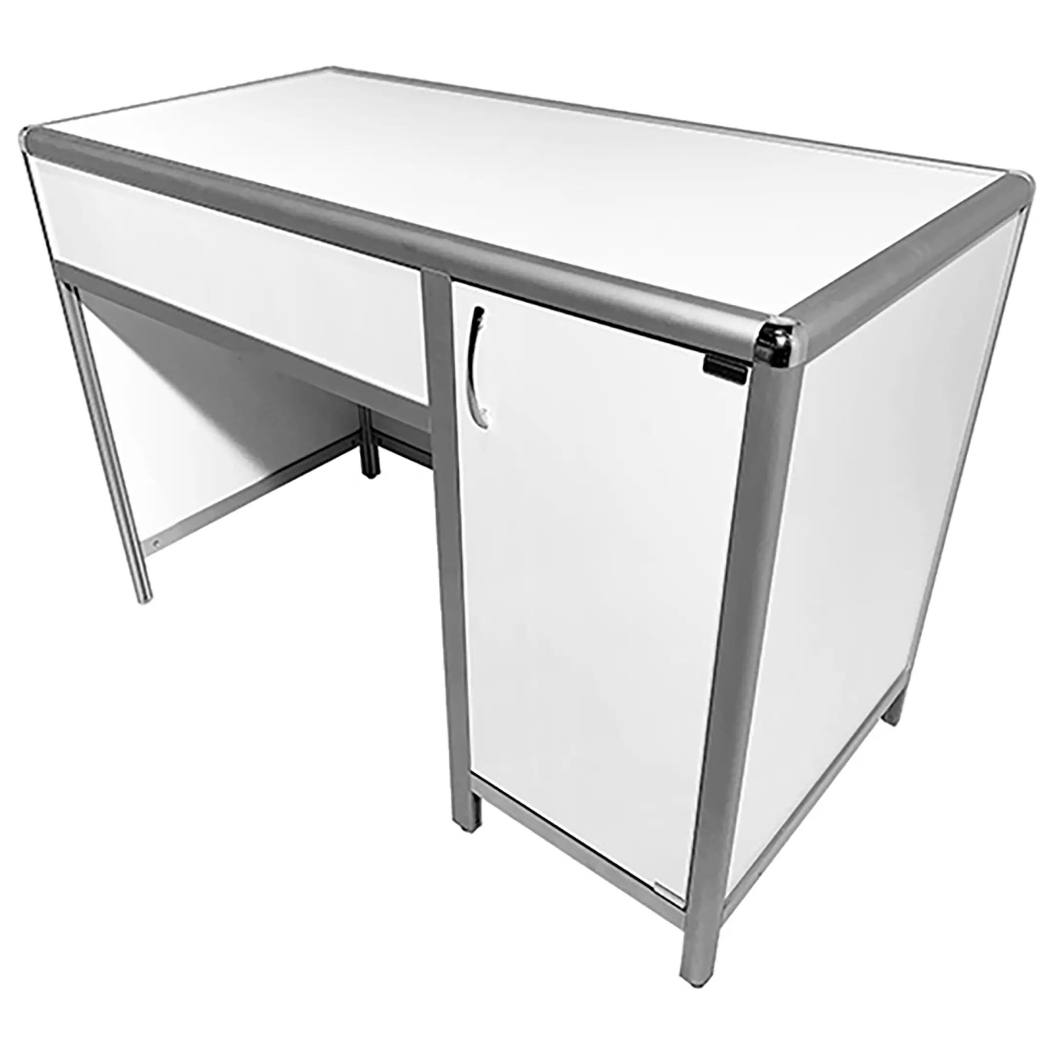Стол лабораторный MED 10.004al (белый) — это надежное и универсальное решение для создания комфортного рабочего пространства сотрудников в лабораториях и медицинских учреждениях. Модель оснащена удобной тумбой с распашной дверкой и полкой внутри, расположенной справа. Каркас выполнен из алюминиевого профиля, столешница из ЛДСП толщиной 16 мм.