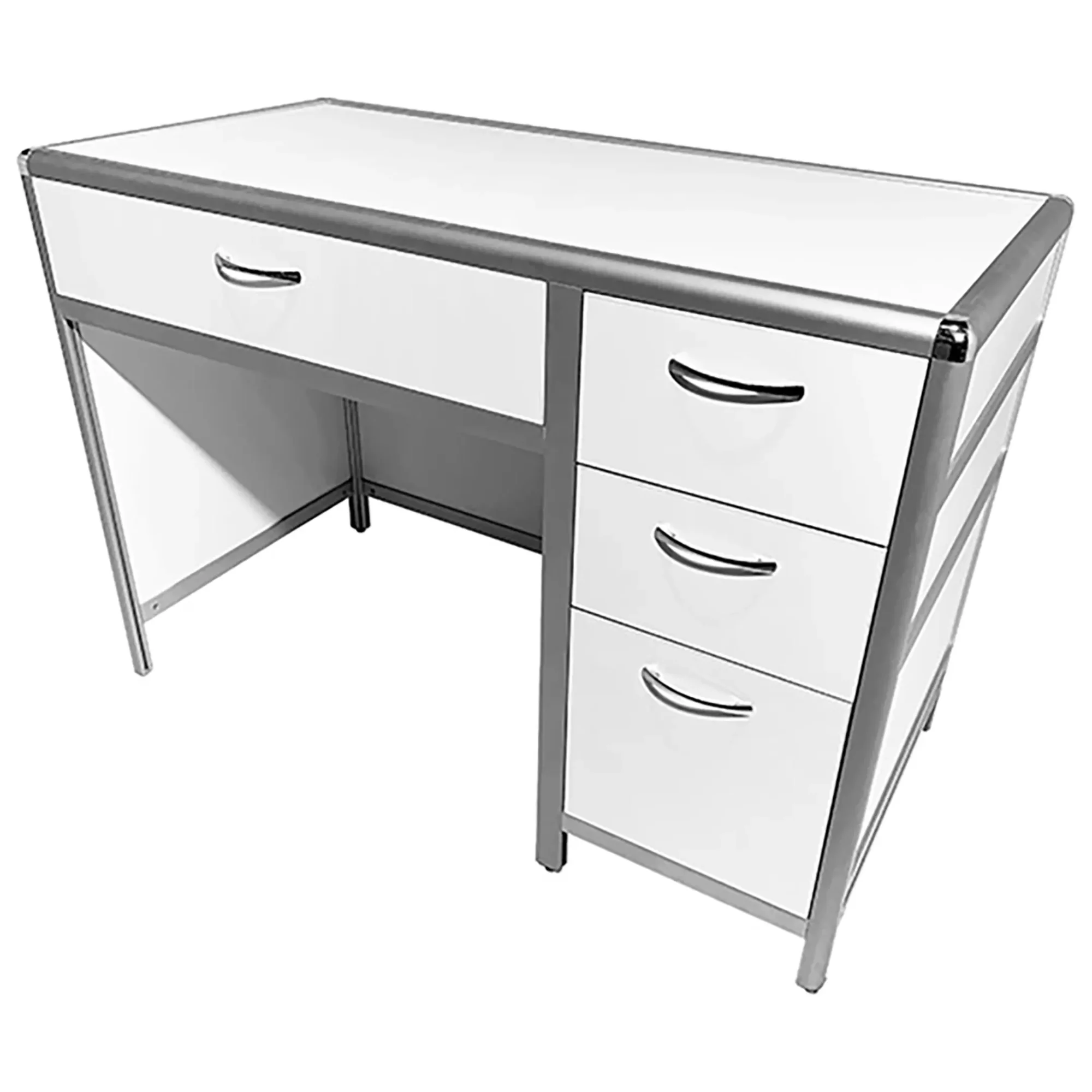 Стол лабораторный MED 10.006al (белый) — это идеальное решение для организации рабочего пространства сотрудников в лабораториях и медицинских учреждениях. Модель оснащена выдвижным ящиком под столешницей и тремя выдвижными ящиками в боковой тумбе. Каркас выполнен из алюминиевого профиля, столешница из ЛДСП толщиной 16 мм.