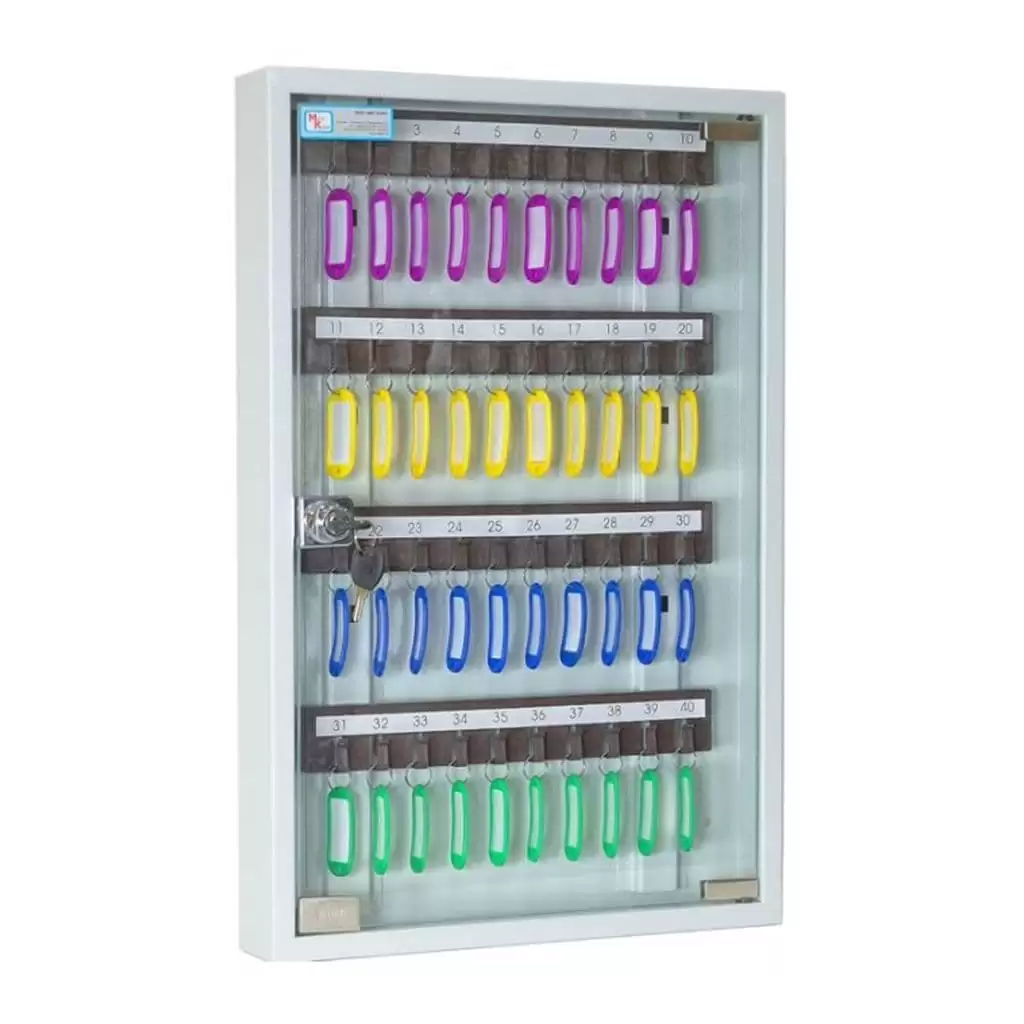 - Универсальная вместимость для отделов и постов — система рассчитана на 40 ключей, что идеально подходит для организации хранения в отделе, на посту охраны, в диспетчерской или службе эксплуатации здания, где требуется поддерживать порядок для значительного количества ключей.