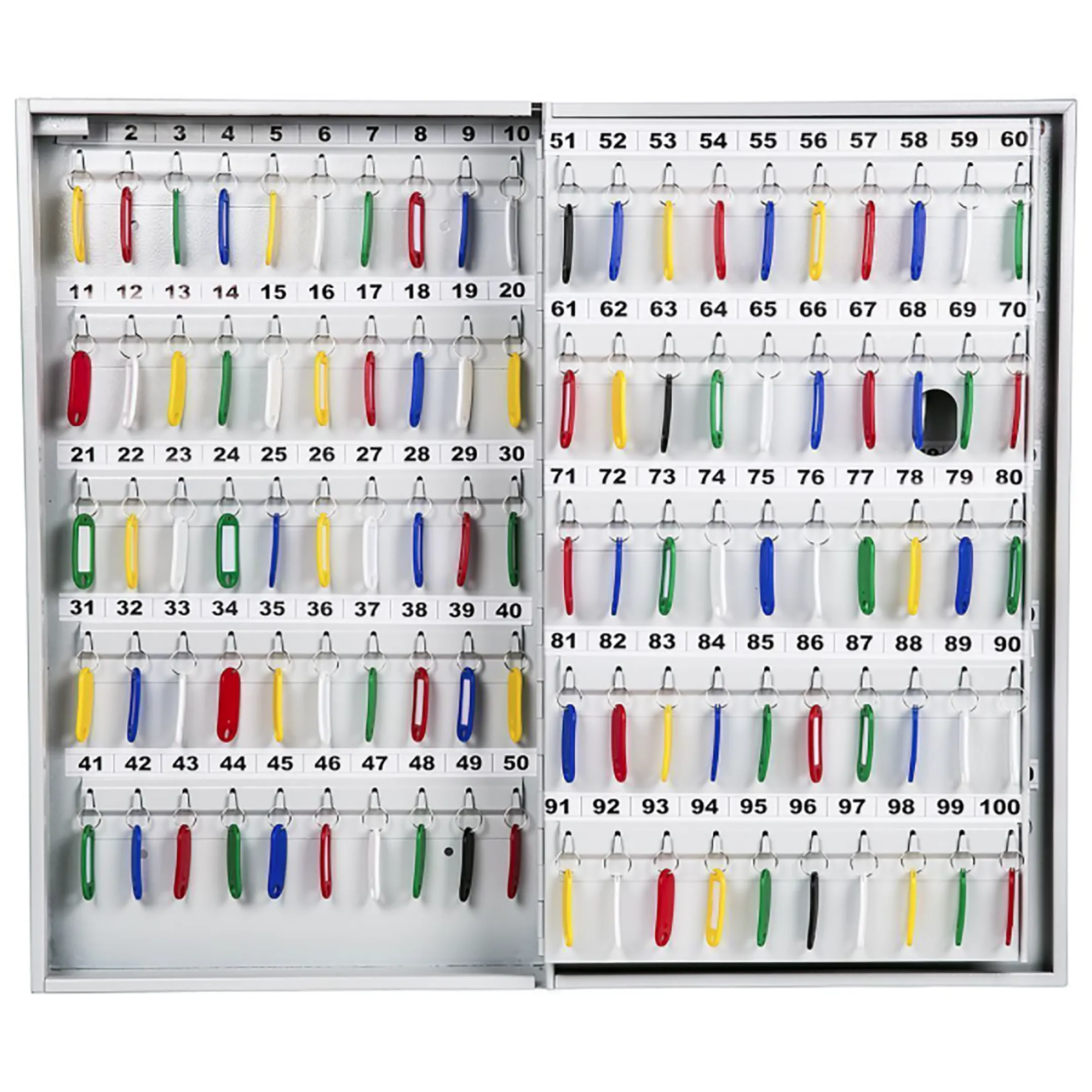 - Четкая организация и экономия времени — система хранения с пронумерованными брелками и соответствующими ячейками (или крючками) исключает путаницу и длительные поиски нужного ключа. Персонал службы безопасности, администраторы или дежурные быстро находят и выдают требуемый комплект.