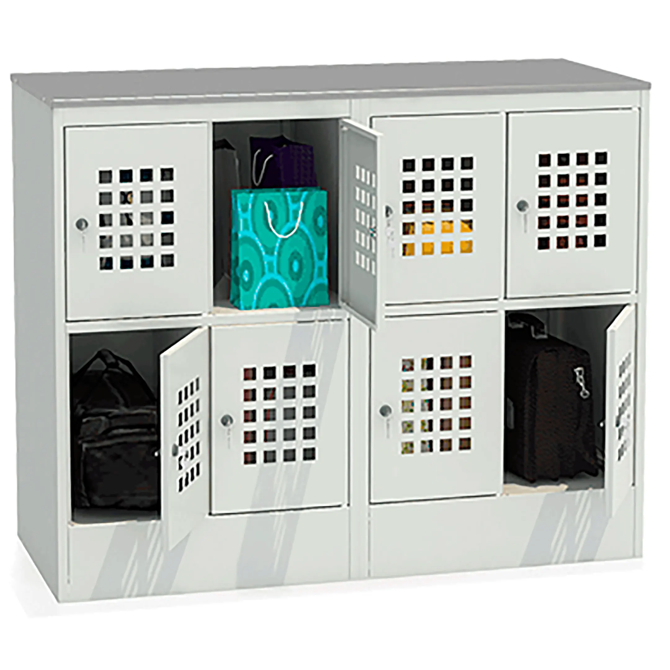 - Вместительность и индивидуальный доступ — 24 или 30 отдельных закрывающихся ячеек (в зависимости от модификации) обеспечивают личное пространство для каждого ученика или посетителя, помогая поддерживать порядок.