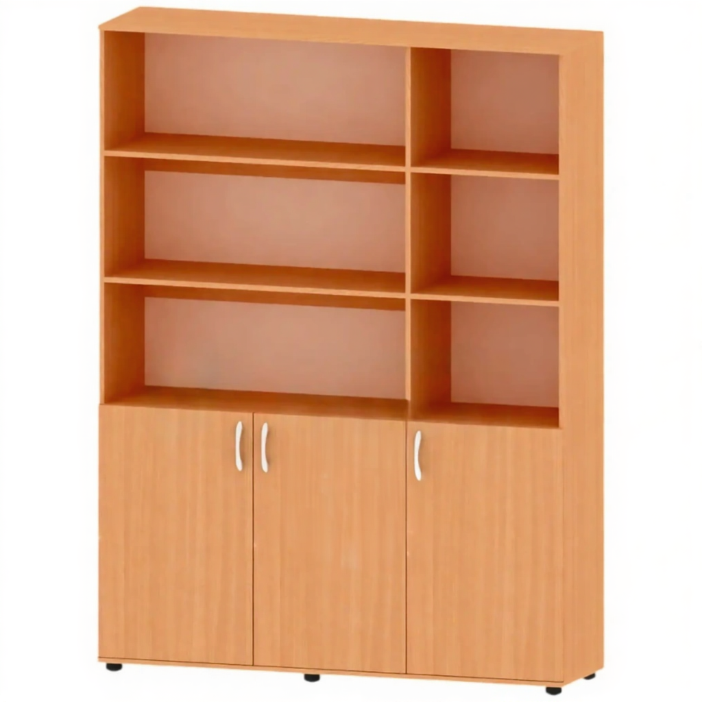 - Полуоткрытая конструкция — сочетание открытых секций для быстрого доступа к часто используемым материалам и закрытых для хранения документов, требующих защиты.