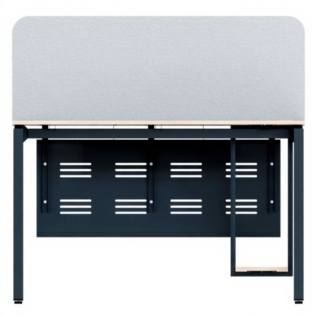 - Комплексная эргономика — перегородка создает приватное пространство, а перфорированный экран обеспечивает оптимальную вентиляцию.