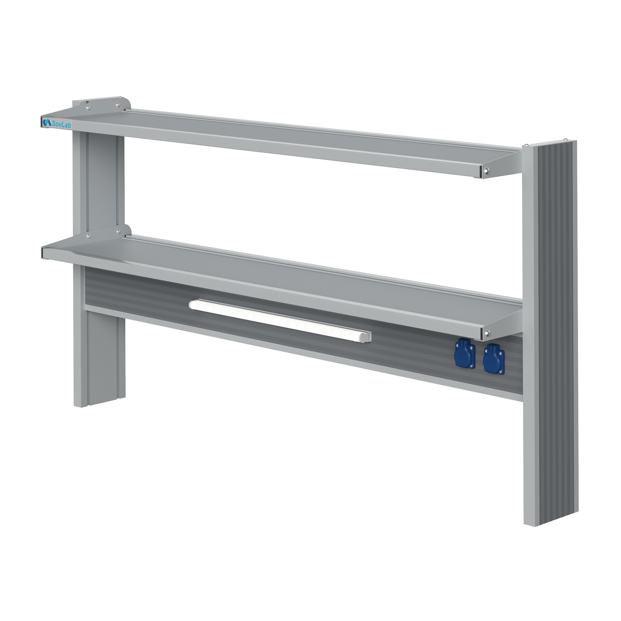 Технологический пристенный низкий стеллаж Mod. 1500 ТСПн — это специализированное лабораторное оборудование, устанавливаемое на рабочую поверхность пристенных лабораторных столов и предназначенное для размещения лабораторной посуды, расходных материалов, инструментов, приборов и другого лабораторного оборудования. Модель оснащена двумя полками, блоком брызгозащищенных розеток и светодиодным светильником для местного освещения рабочей зоны.