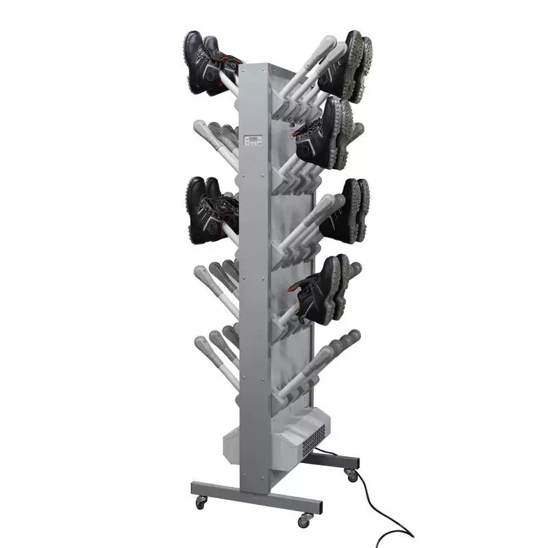- Эффективная принудительная сушка — система обеспечивает направленную циркуляцию теплого воздуха внутри каждого отсека, что значительно ускоряет процесс сушки обуви по сравнению с естественной вентиляцией. Это позволяет быстро и качественно просушивать обувь даже после интенсивного использования.