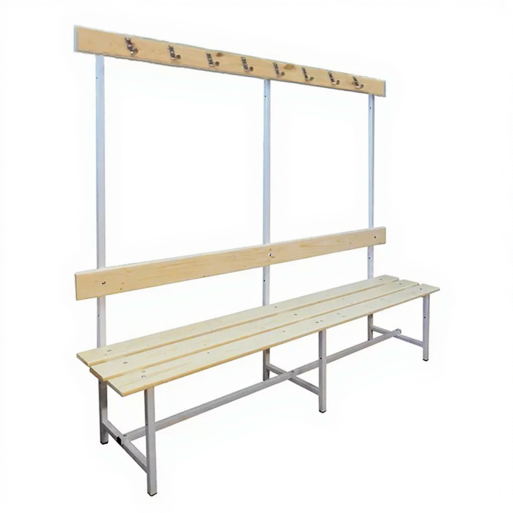 Скамья с вешалкой односторонняя 8 крючков — это надежное и функциональное решение для оборудования раздевалок, вестибюлей, гардеробных комнат в спортивных учреждениях, школах, производственных помещениях и т.п.
