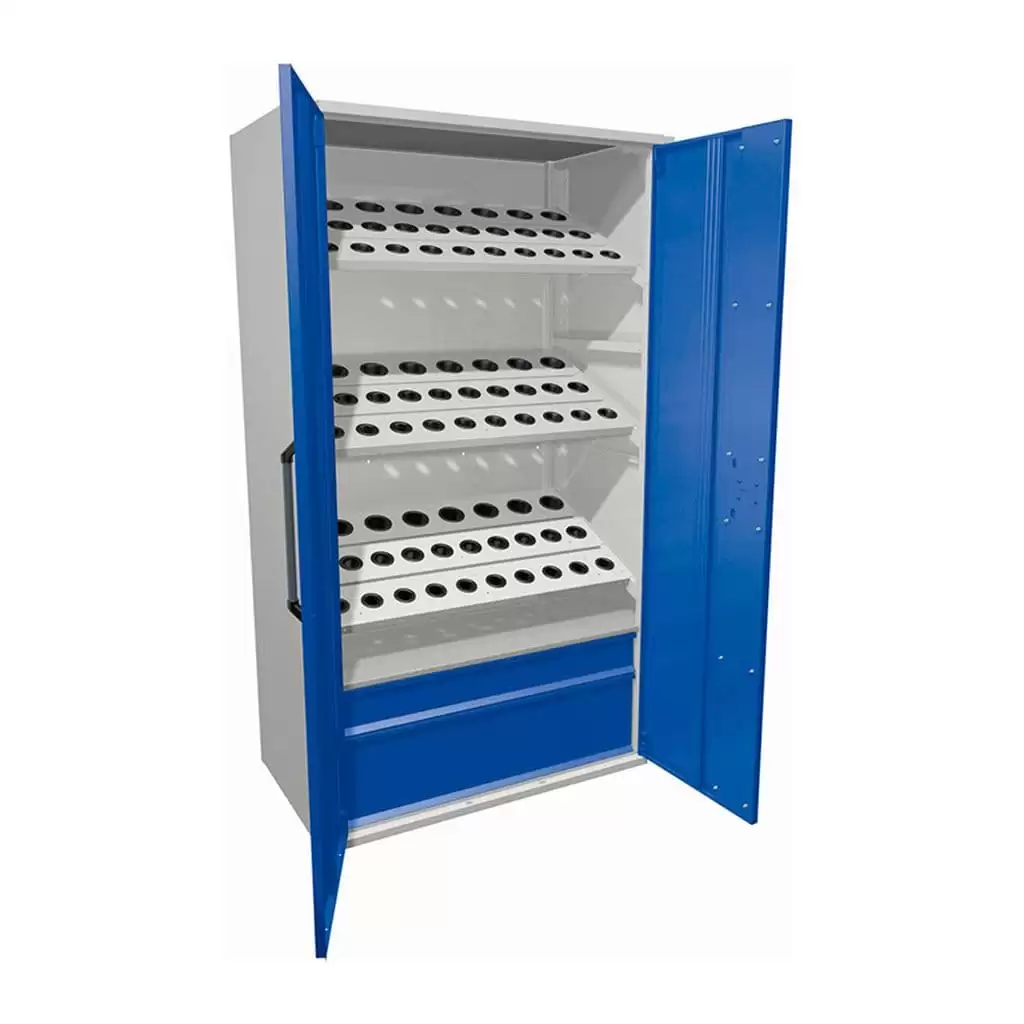 - Защита от пыли и воздействий среды — плотно закрывающиеся дверцы помогают защитить чувствительное измерительное оборудование и точную оснастку от производственной пыли, стружки, влаги и других неблагоприятных факторов, присутствующих в цеховой атмосфере.