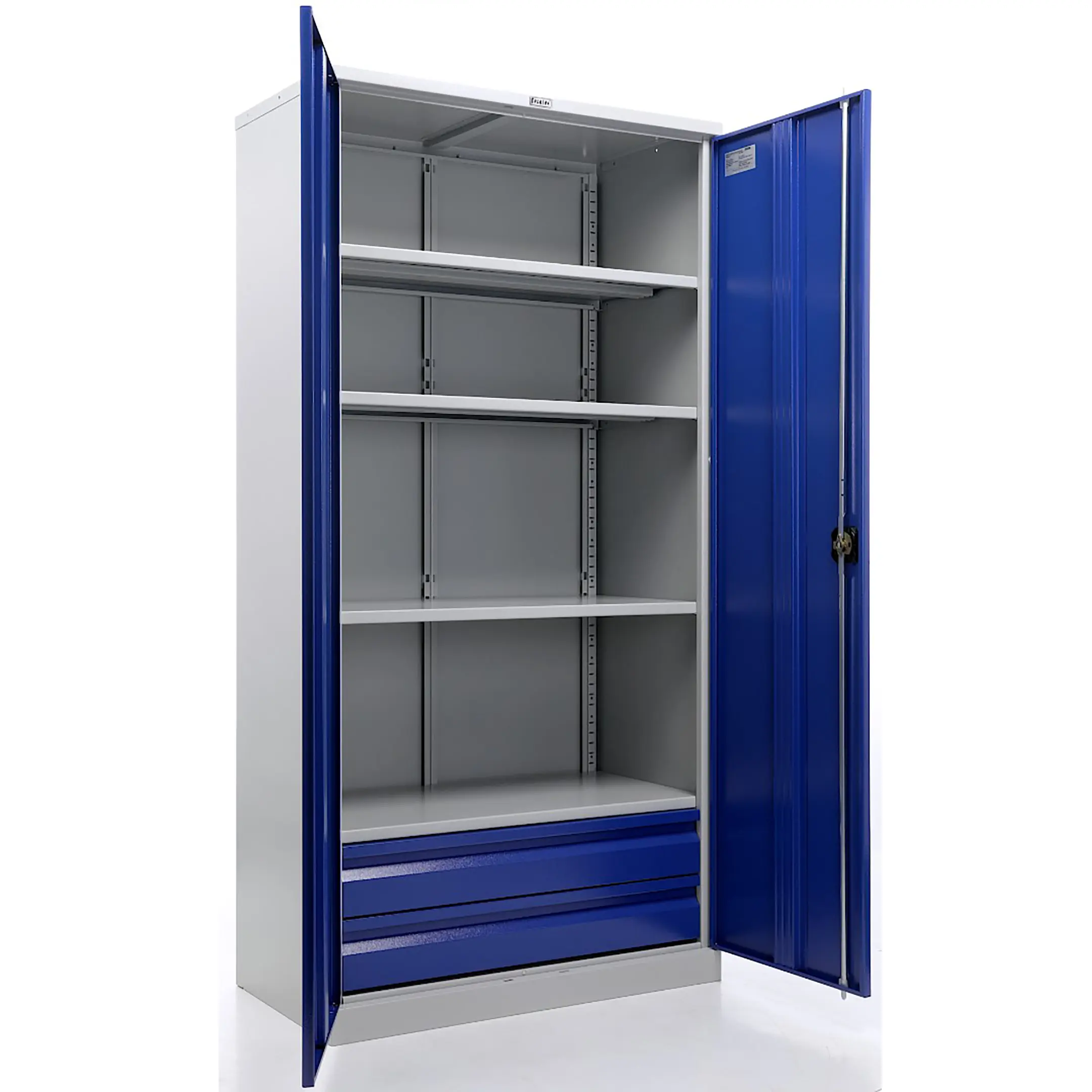 - Повышенная защита и безопасность — прочный корпус из стали повышенной толщины и усиленная конструкция дверей с надежной запорной системой (часто — центральный замок с несколькими точками запирания) обеспечивают максимальную защиту ценного инструмента от кражи и несанкционированного доступа.
