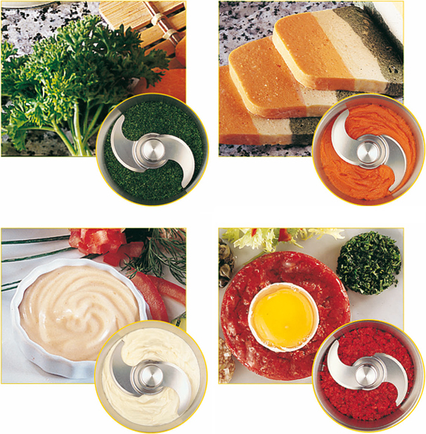 Куттер компактен, снабжен мощным вентилируемым двигателем, обеспечивающим эффективную работу даже с мясом или тестом. Прямой привод обеспечивает максимальную мощность. Крышка из поликарбоната предусмотрена для добавления жидкости или ингредиентов в процессе приготовления. Удобная ручка позволяет переносить чашу куттера одной рукой. Все рабочие части легко снимаются и моются.