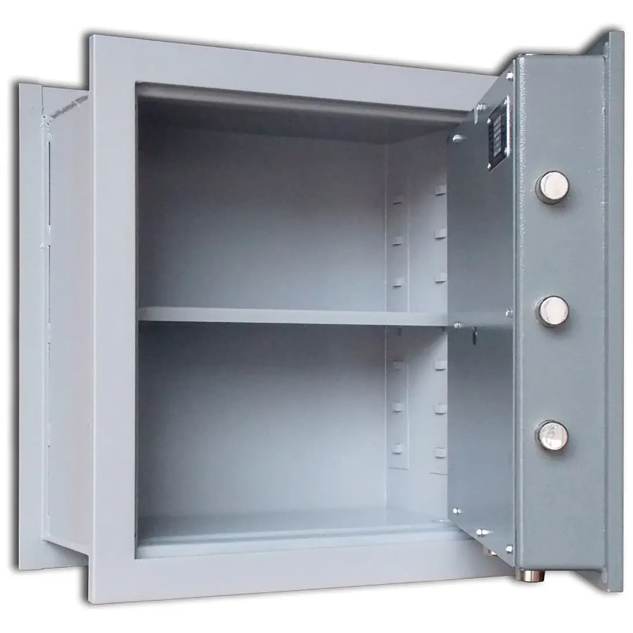 • Вместительный встраиваемый сейф первого класса взломостойкости, с ключевым замком и полочкой;