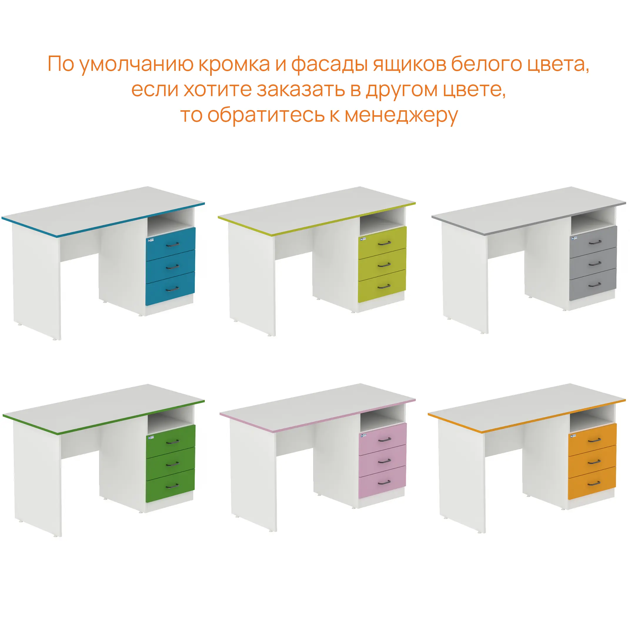 По умолчанию кромка и фасады ящиков в белом цвете, но возможно изготовление в других цветах, варианты представлены на последнем фото в карточке товара.