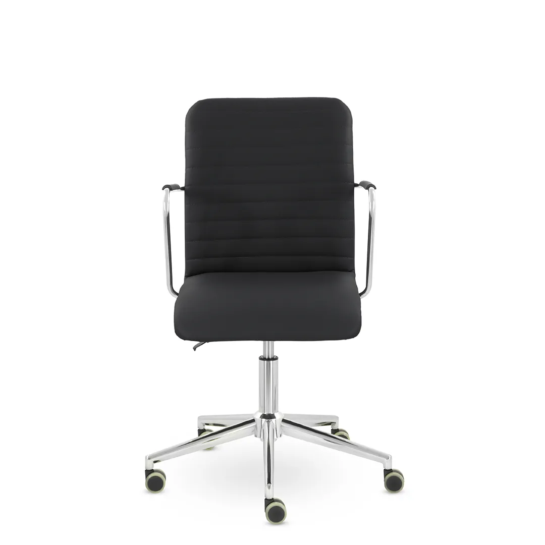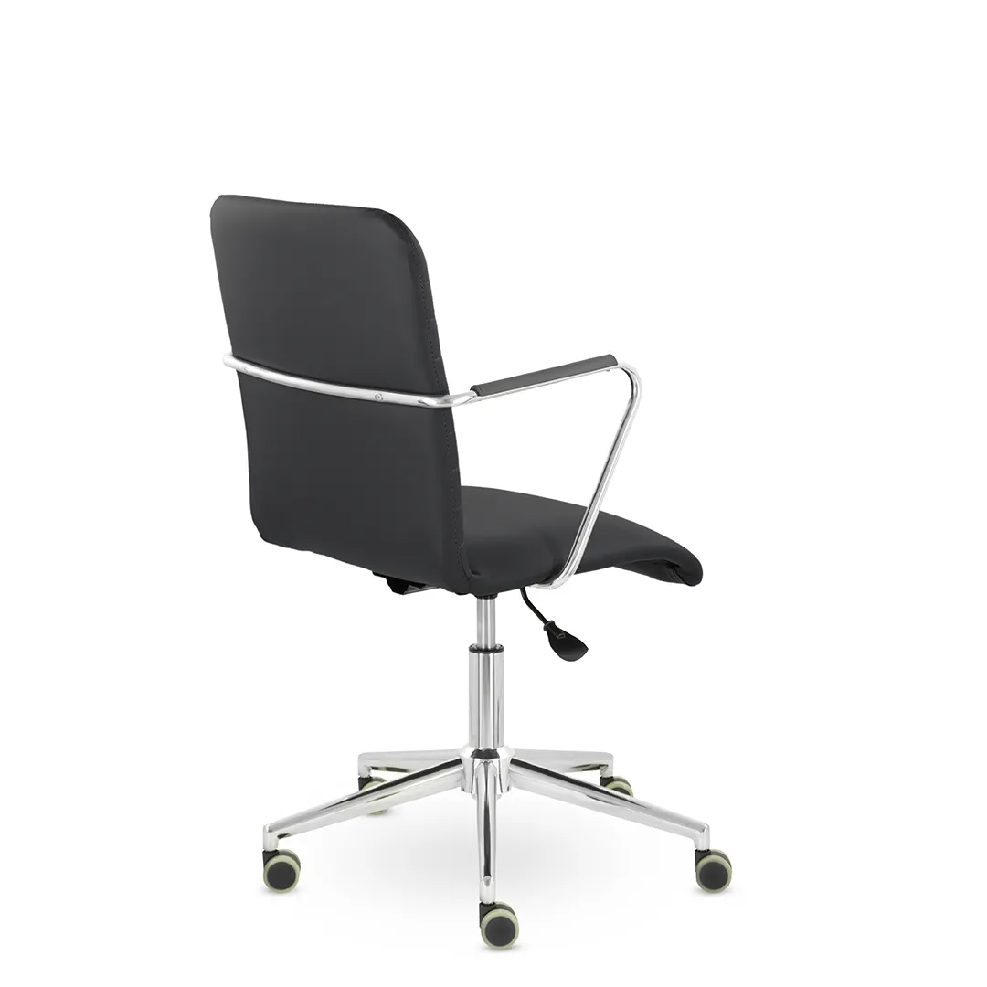 - Универсальный дизайн — сочетание классических форм и хромированных деталей делает кресло подходящим для офисов в разных стилях — от бизнес‑класса до современного минимализма.