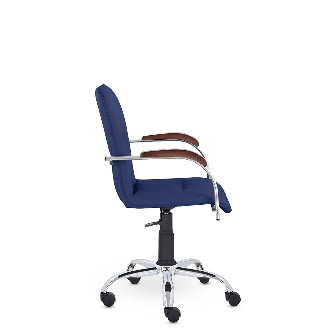 - Эргономичная посадка — спинка с поддержкой поясницы и удобное сиденье обеспечивают комфорт при длительной работе или совещаниях.
