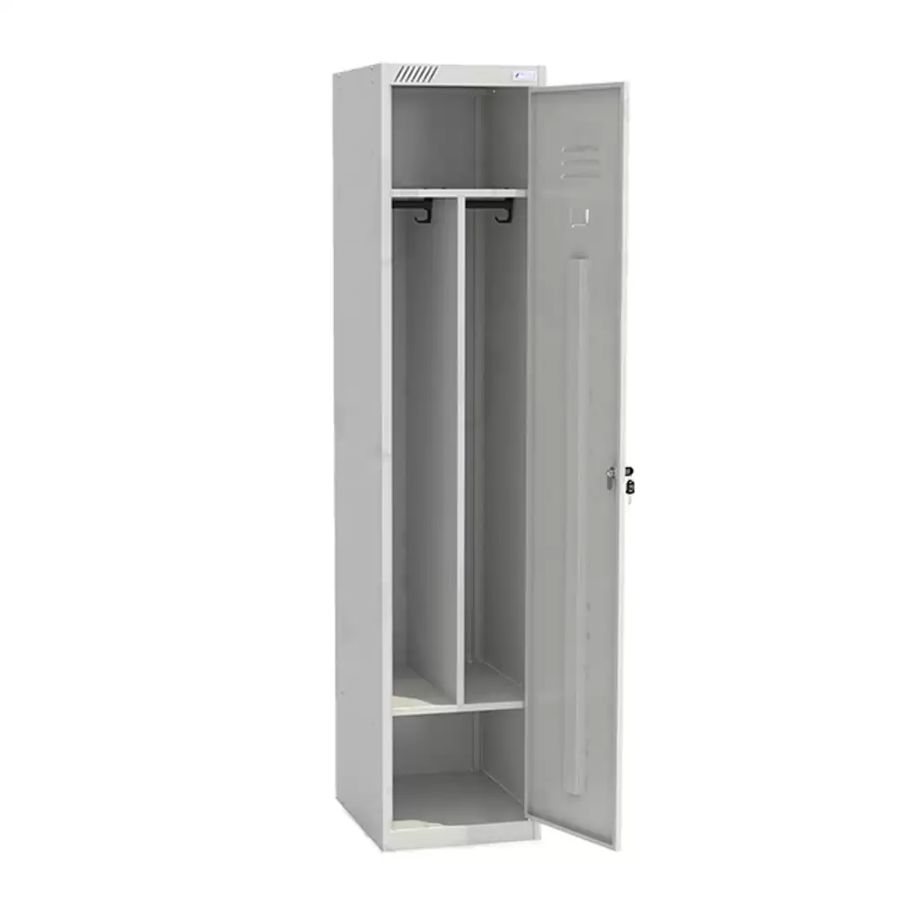Металлический модульный шкаф для одежды ШРС-11-400 с перегородкой используется для хранения сменной одежды в офисных, производственных, спортивных помещениях.