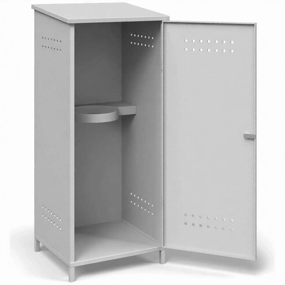 - Гарантированное обеспечение пожарной безопасности — шкаф служит надежным пожаробезопасным барьером, изолирующим пропановые баллоны от источников открытого огня, искр и теплового излучения. Обязательная система вентиляции (перфорационные отверстия в нижней и верхней зонах) обеспечивает постоянный воздухообмен и безопасный отвод тяжелого газа в случае утечки, предотвращая образование взрывоопасной концентрации.