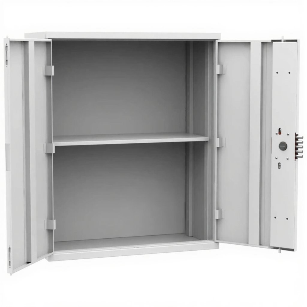 - Надежная защита ценного имущества — усиленные запирающие механизмы на обеих створках обеспечивают высокий уровень безопасности, предотвращая несанкционированный доступ, кражу и защищая содержимое от внешних воздействий и пыли.