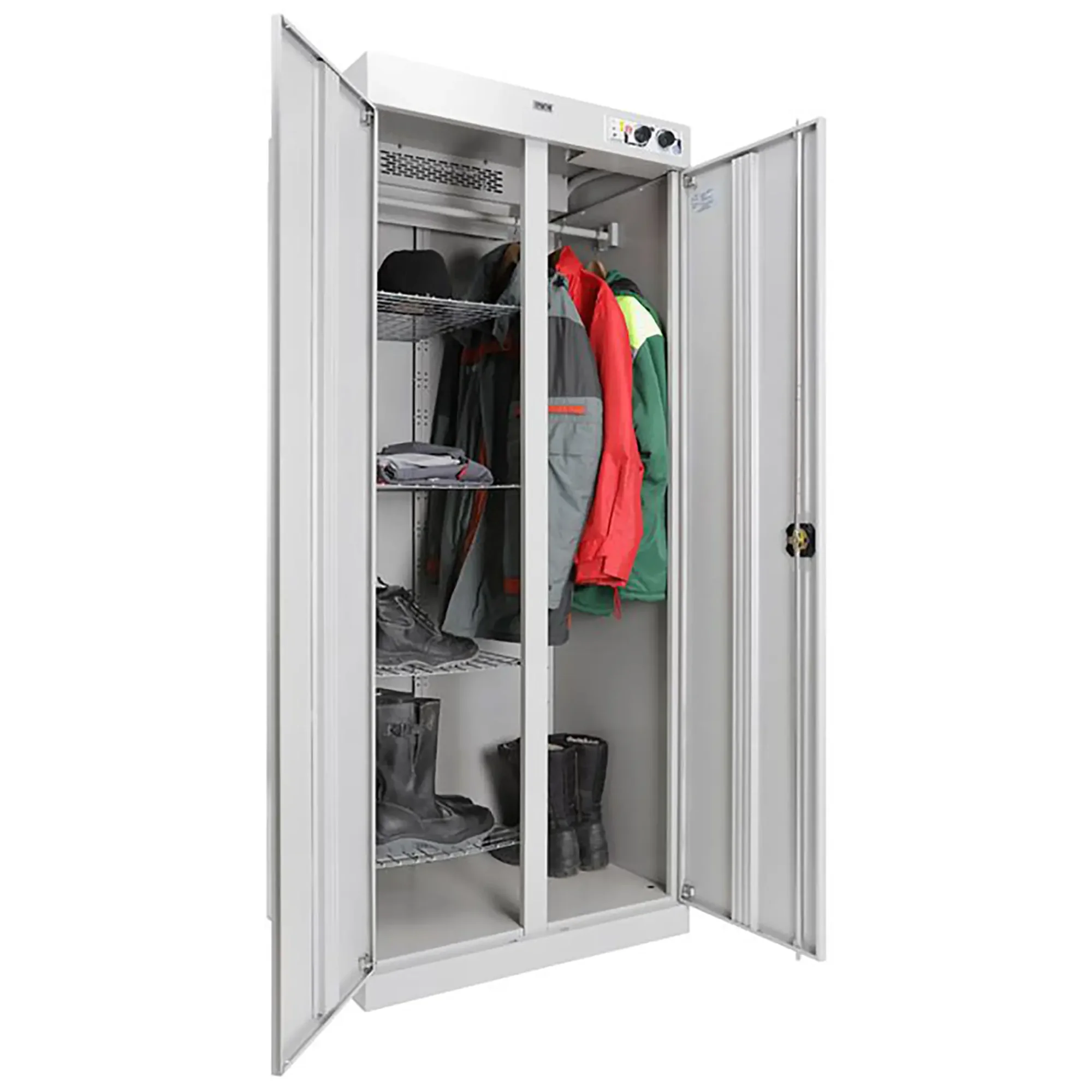 Шкаф сушильный ШС Циклон 1985 — это производительное и надежное оборудование для эффективной сушки рабочей и спортивной одежды, спецодежды, обуви и инвентаря на предприятиях, в медицинских, спортивных учреждениях и учебных заведениях. Модель обеспечивает быструю, равномерную сушку благодаря интенсивной циркуляции теплого воздуха, способствуя оперативному устранению влаги, запахов и поддержанию гигиены.