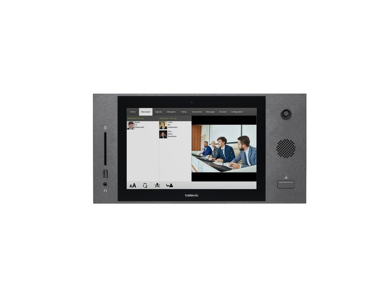 Врезной пульт делегат/председатель серии Plixus Multimedia с сенсорным экраном 10", встроенные камера, громкоговоритель, картридер для аутентификации, разъем для наушников, USB